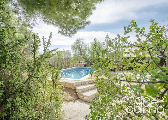 La villa está a poco más de 10 minutos en coche de la Cala Bon Capó, mientras que Actividades Turistiques Mar Natura se encuentra a unos 15 minutos en coche.